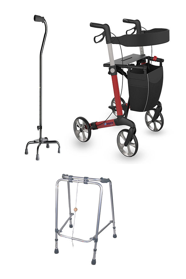 There are many different types of walking aids with each one designed to assist with a broad range of mobility issues and overall concerns. The different types of walking aids include walking sticks and canes, crutches, rollators and walking frames.
