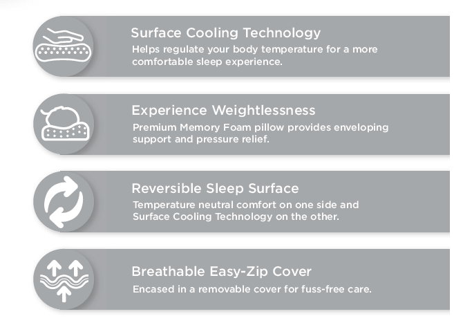 Contoured Immersion: Specially layered memory foam provides contoured immersion for support and pressure relief. |