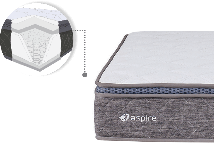 | Luxuriously soft pillowtop layer provides a plush immersive feeling complimented by the responsive pocket springs. |