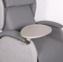 - Utility Table: Offers a convenient surface for refreshments, books, electronic devices and the like. Rotates out of the way for stowage or for clear seat entry and exit. Mounted to the non-moving armrest frame, the tray stays horizontal while a user is tilted and repositioned (optional accessory available here)